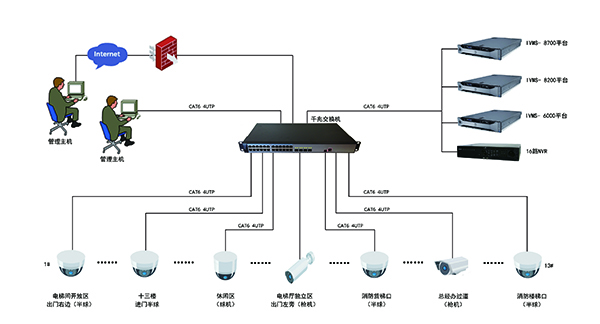 2、公共區域、走廊、檔案室、機房設置監控點。來訪人員、人流量較高的體閑區設置監控點,采用紅外高清快球監控設備,具備1080P高清畫質,可根據需要360度靈活調整監控角度獲取有效監控視頻;走廊區域、機房、檔案室設置高清半球監控設備。