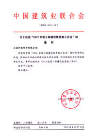 在2012(第3屆)置業中國/工程建設國際峰會上,中國建筑業聯合會為表彰先鋒、樹立榜樣,充分發揮優秀施工企業在我國建設工程領域的導向作用,經施工企業層層選拔推薦,最后由中國建筑業聯合會評審委員會審定:云南科海電子有限公司獲選“2012全國工程建設優秀施工企業”。