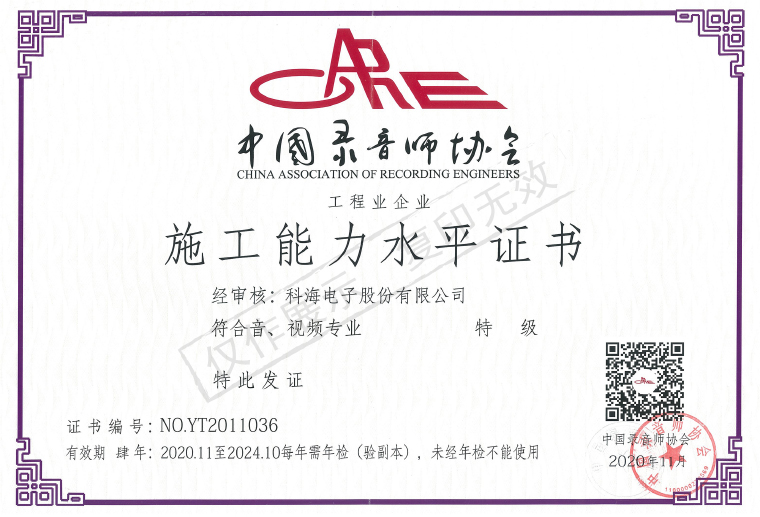 音、視頻工程企業資質認證證書